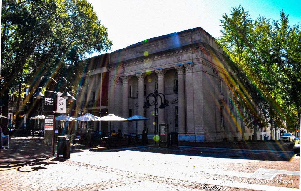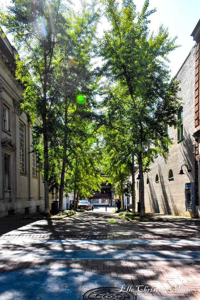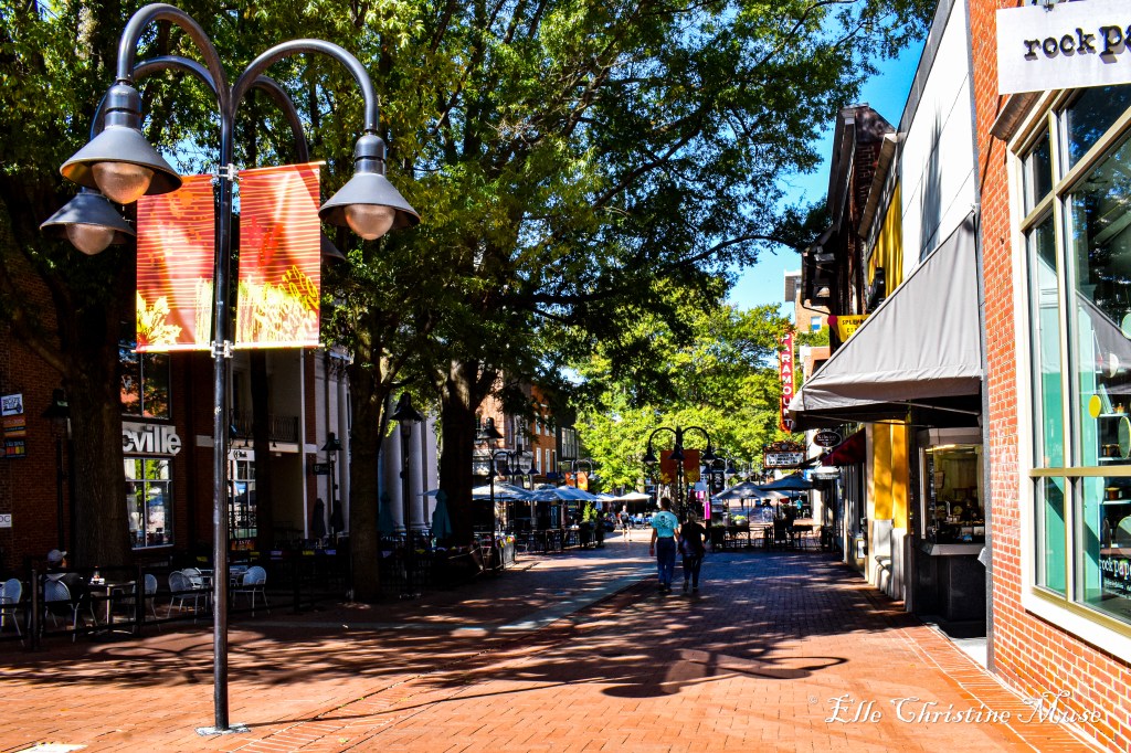 I loved the large shade trees that hovered above me as I traversed down the walkway. Gazing around at old buildings with chic little shops, I appreciated the general ambience of the main drag in Charlottesville. There’s a surprising bit of construction in the area, however, which reminds us of the constant growth of an otherwise small city.