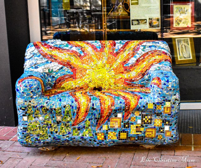 My initial intention was to grab a cup of coffee and some breakfast on a patio to start my adventure. So I strolled up and down the brick walkway and perused my options. I was truly impressed by the outdoor patios erected down the center line of Main Street’s wide berth. Many of them were turned into warm, inviting spaces with greenery and shading umbrellas. It was massively appealing, and already popularly attended by other patrons.