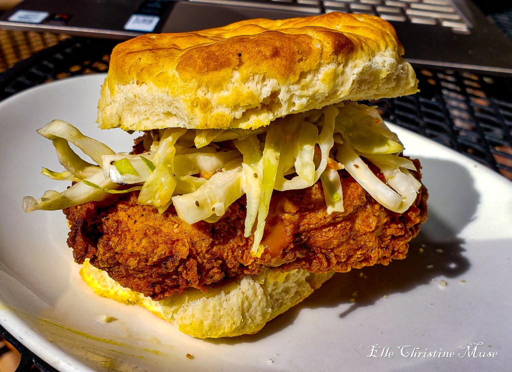 My $8.00 chicken biscuit was simply decadent! The chicken was crispy and full of peppery pizazz, and the classic addition of coleslaw with a light drizzle of Carolina BBQ sauce tied the whole sandwich together, adding moisture, crunch, and a zesty sweetness. I do have a particular fondness for mustard-based BBQ sauces. However, that delicious flaky biscuit was falling apart in my fingertips, making a bit of a mess. It was worth every bite!