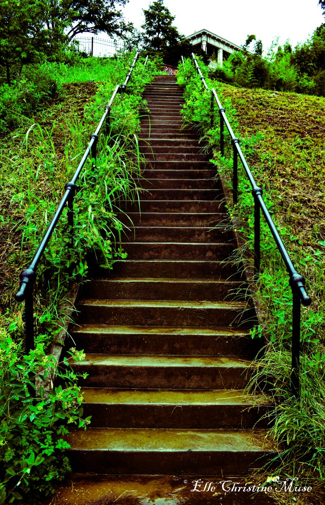 The main section of the park has a diagonal sidewalk in need of maintenance and a wonderful set of steps to help pedestrians going to and from Shockoe Bottom to the Church Hill neighborhood. There is a fabulous view of the city at the Grace Street Overlook. The overlook has a small garden with an informational park sign. The sign includes a copy of the Mathew Brady photograph taken at the end of the Civil War (c. 1865) with a fabulous view of downtown including the Virginia State Capitol and Shockoe Bottom.